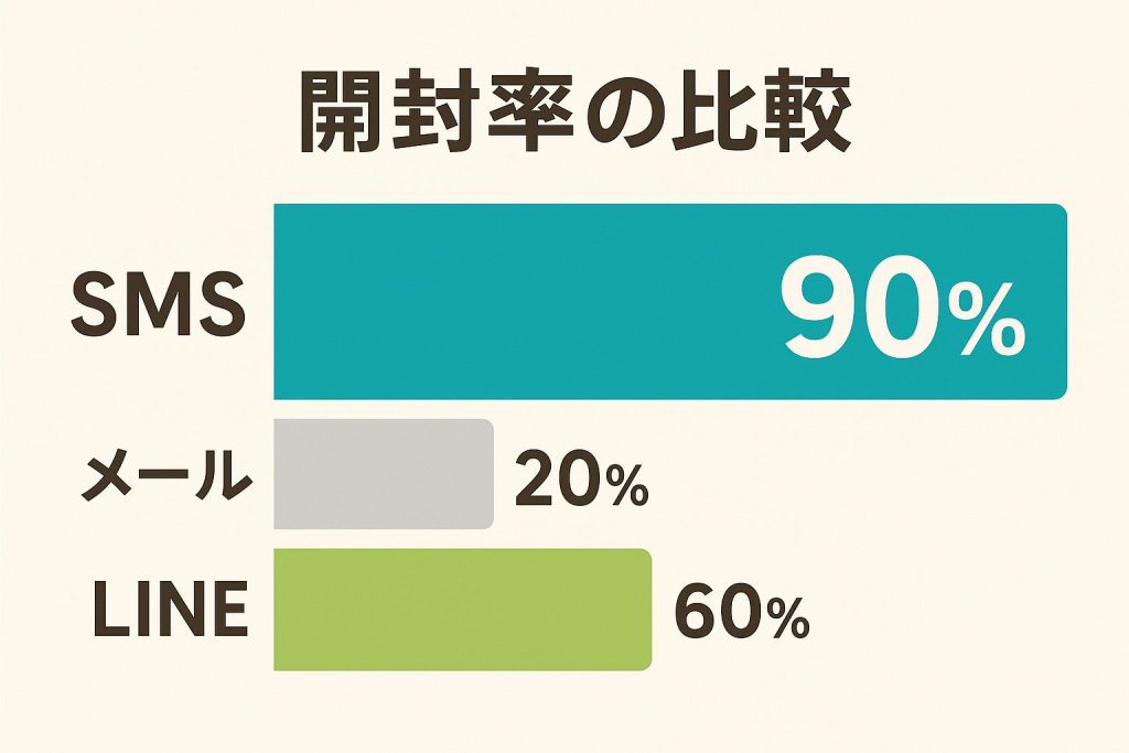 SMSは、他の連絡手段と比較して高い開封率を誇ります。